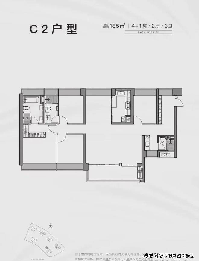 185㎡4房2厅3卫,折后总价1008-1085万/套,单价5.43-5.83万/㎡