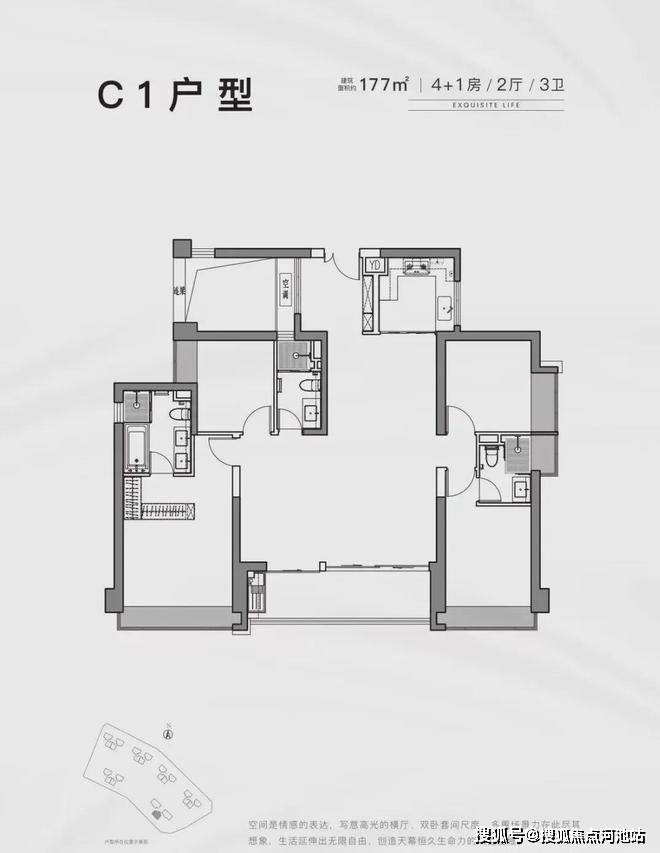 177㎡4房2厅3卫,折后总价954-1006万/套,单价5.39-5.66万/㎡