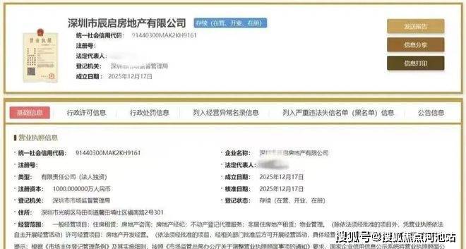 拿地仅10天,龙湖光明新地块项目公司完成工商注册——深圳市辰启房地产有限公司