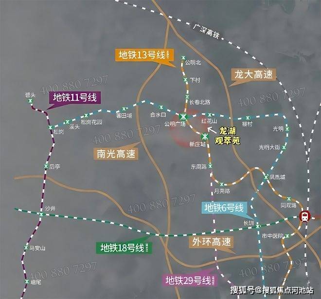 交通配套:龙湖观萃苑距离6号线红花山站E2出口仅约300米,步行5分钟可达。距离在建中的13号线新庄站约1公里左右,13号线二期预计2026年开通,建成后可快速通达南山核心区域。