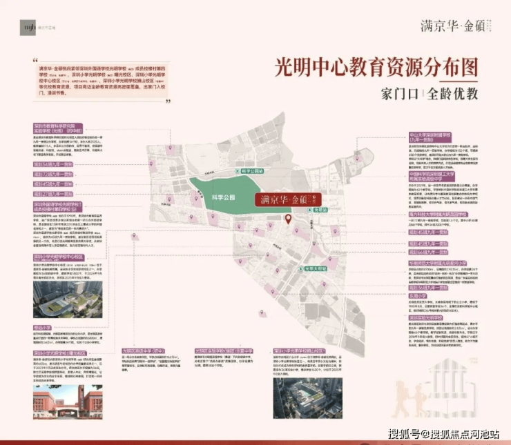 满京华·金硕项目直面占地约208万㎡的科学公园(在建中),近享深圳国际美术馆(暂定名、在建中)、深圳科学技术馆、科学城体育中心(在建中)、会议中心(规划中)等市政级文体配套;还坐拥狮山公园(规划中)、约9.4万㎡的东周文化公园,约10万㎡的开明公园,约56万㎡的新城公园等丰富绿色生态资源。