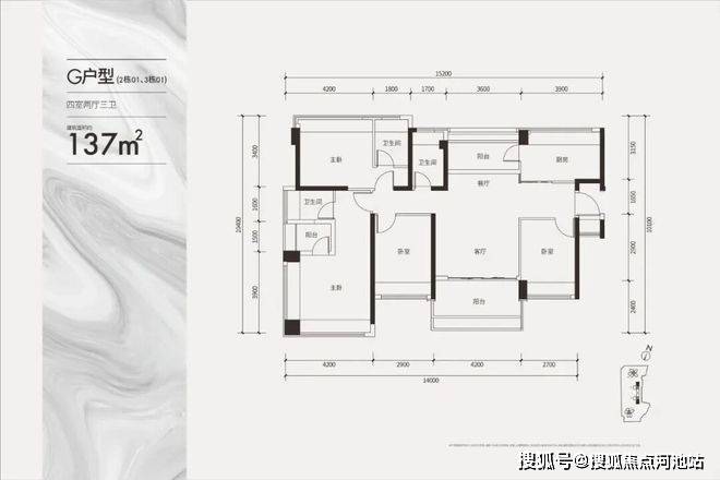 项目户型:108/137㎡奢阔四房