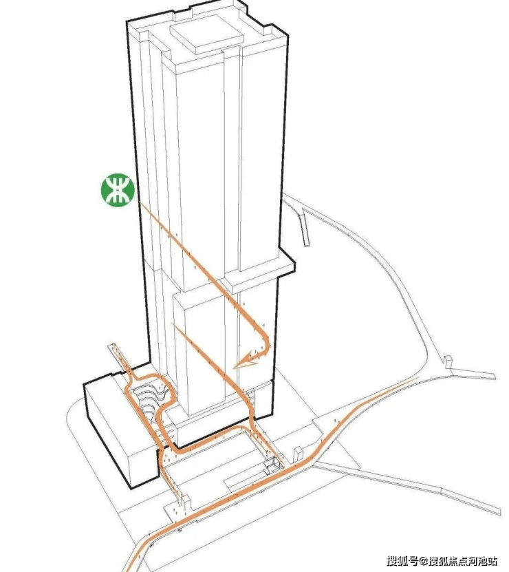 设计策略项目裙房通过设置共享中庭、下沉广场及空中连廊,打造富有趣味的城市客厅,设置垂直交通实现多维的竖向空间叠加,无缝接驳人流,实现城市共享互联。△以共享互联汇聚室内外人流△效果图通过曲线自然的艺术中庭空间形态,集购物、交流、共享办公为一体的功能,打造独特气质的公共空间。商业中庭结合可持续发展的环保生态开发理念,为新孵化器企业、新总部办公提供互动的健康、绿色、灵活的办公空间。