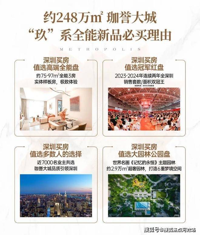 最新消息:深圳宝安沙井新楼盘——鸿荣源珈誉玖玺,已经开盘了!新户型住宅产品再次加推,开盘惊喜价出炉!本次为最优地块,高使用率小户型,面积77㎡做到三房!110㎡做到了四房两卫!最宽的楼间距,还有最畅销的小户型来了也实现了最优的价格。
