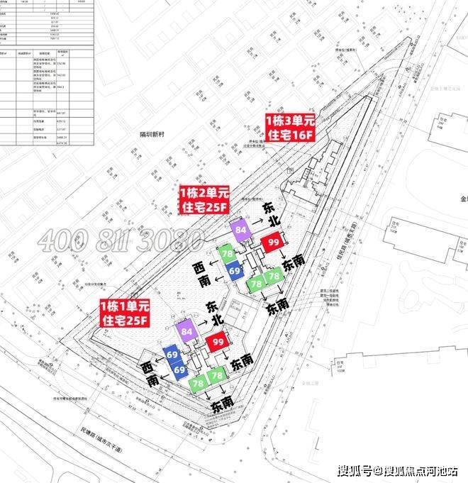 户型:约 69-99㎡ 3-4 房,户户朝南、新规高得房率
