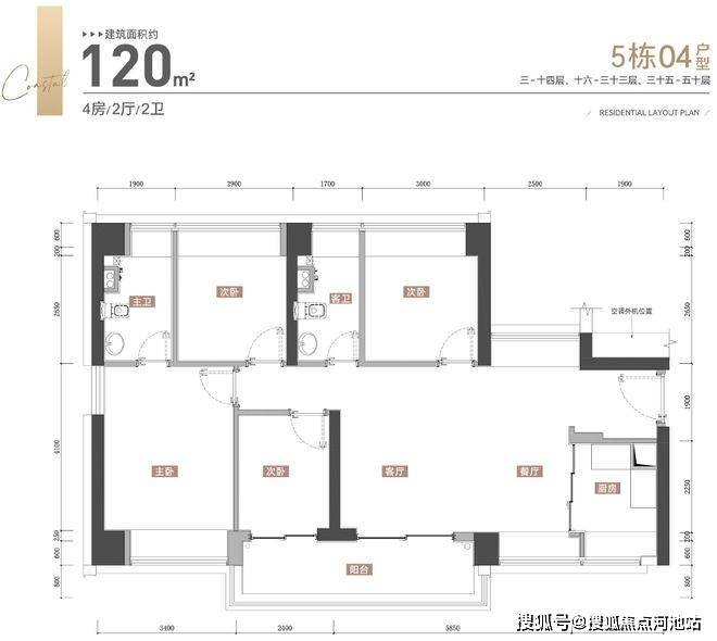 建筑面积约143㎡的4房2卫,同样是大横厅的设计,通透采光。客餐厅约7.05米开间,横厅设计,客厅直连观景阳台,餐厅有飘窗,通风采光优越;超7米大开间观景阳台,客厅和次卧阳台直连,极致观景面;主卧超级大衣帽间和卫生间,阔绰舒适主人房;双阳台多飘窗,提高室内使用率。