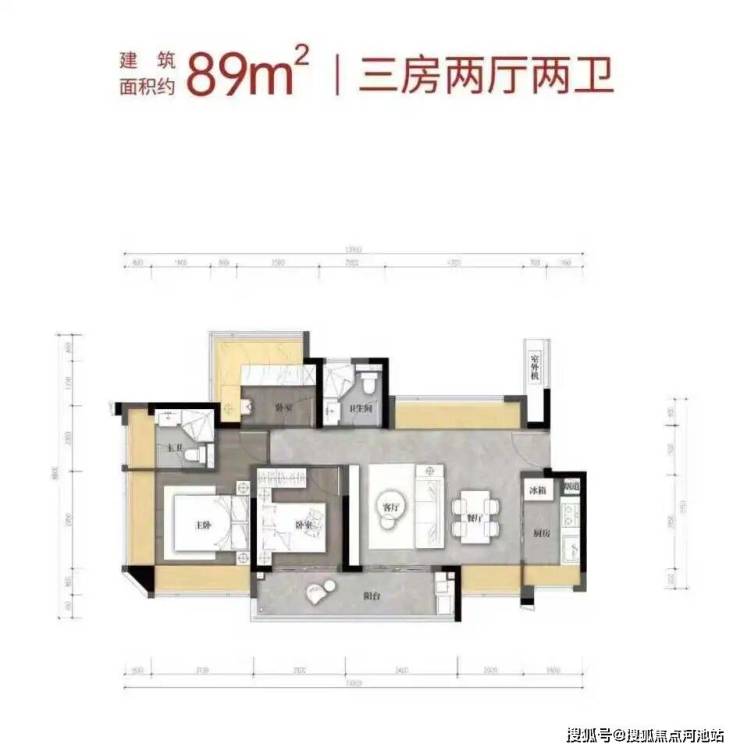 【建筑面积89㎡3房2卫】