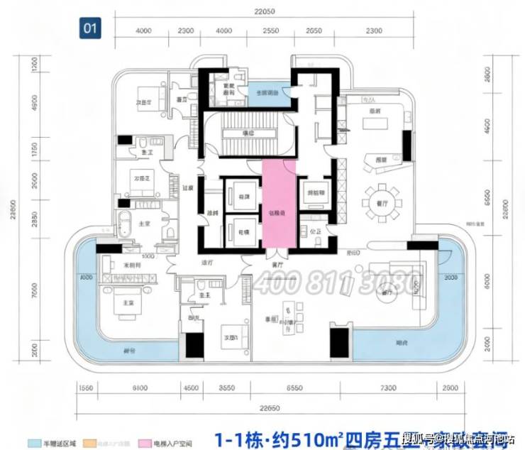 3. 户型面积:有211 - 218 - 302 - 370 - 512㎡大平层,另有4套518 - 655 - 938㎡顶复。