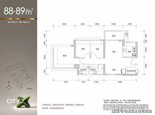 约89㎡3+1房2厅2卫