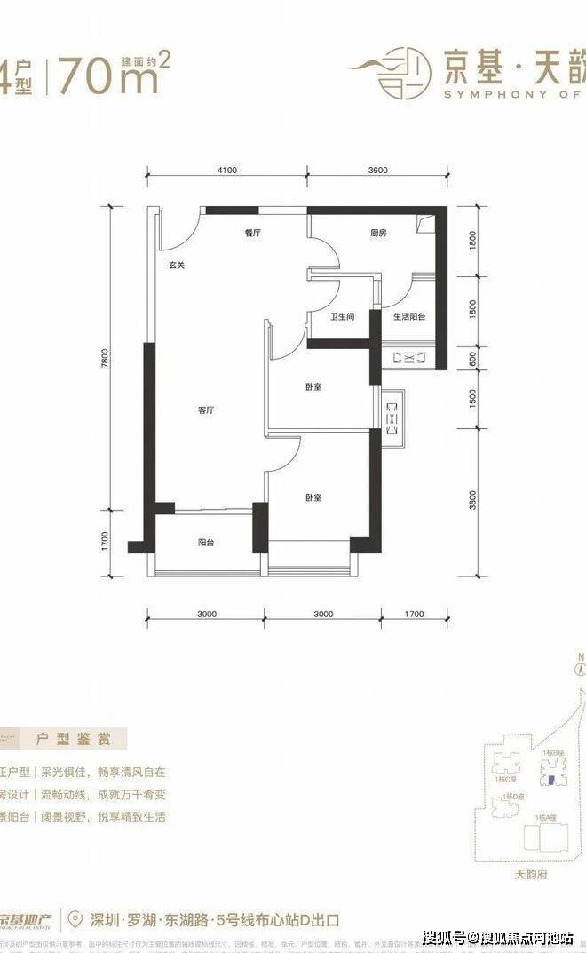 本次将推售的京基天韵府,项目位于仁心路(规划中)与围岭中路(规划中)交汇处,其中1栋A座办公楼71层,1栋B座是商品房+回迁房62层,1栋C座,1栋D座是回迁房,5梯7户设计。