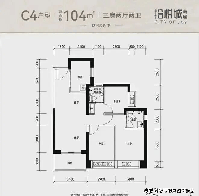 104平,折后总价365万-410万,折后单价3.5万-4.13万/m²