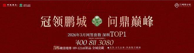 这股热销势能,鹏宸云筑楼盘在2026年第一季度迎来高光时刻,连夺三项热销榜单:一举夺得3月深圳网签套数TOP1,荣登第一季度龙华区新房业绩TOP1,跻身第一季度深圳全市销量TOP2。(数据来源:克尔瑞)。