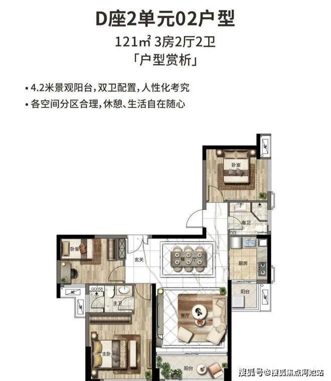 121㎡ 3房户型:单价:5.3万起、总价550万起