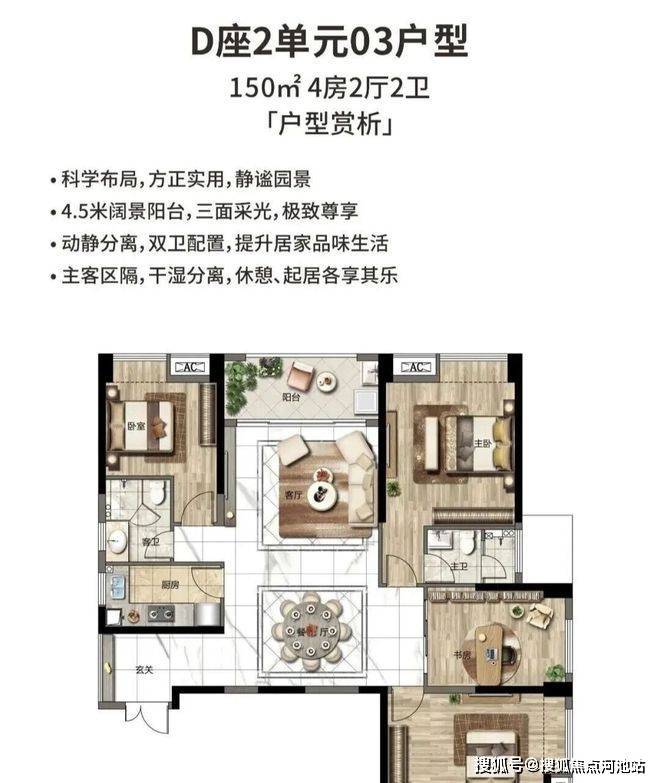 150㎡ 4房户型:单价:4.2万起、总价550万起