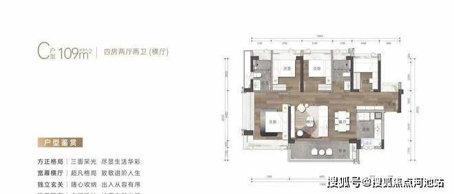 109㎡4房 单价:7.71-8.50万,总价:841-926万
