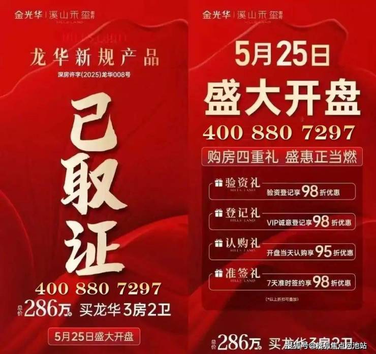 溪山禾玺御府首批已拿预售证,折扣体系:验资98、VIP登记98、认购95、准签98,3房2卫产品折后总价仅286万起;定于2025年5月25日开盘!
