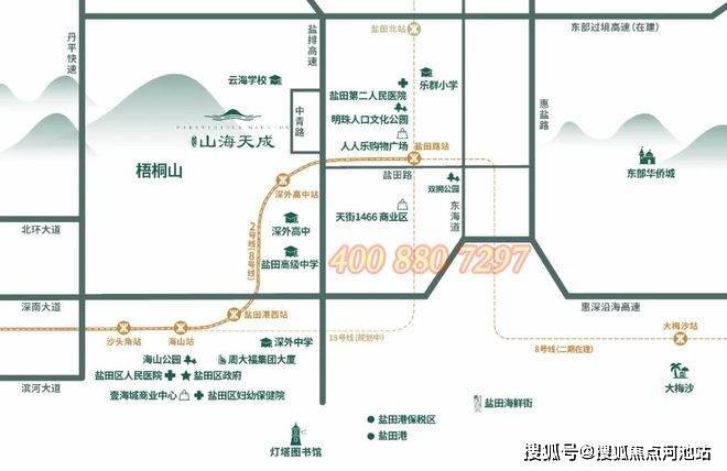 项目处于"深港合作第三极"的核心位置,紧邻沙头角口岸和莲塘口岸,是深圳唯一与香港水陆相连的城区。盐田区作为深圳市"十四五"重点发展区域,正在推进沙头角深港国际消费合作区建设,规划释放产业空间超500万平方米,形成千亿级旅游消费产业集群。项目周边2015年后新建小区占比超80%,城市界面崭新。