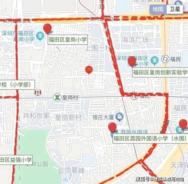 项目按2025年的学区划分来看,小学学区处于皇岗小学、荔园外国语小学(水围),中学学区处于皇岗创新实验学校(初中部)。