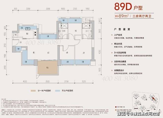 89㎡的3房2卫,折后总价266-302万/套,折后单价2.98-3.39万/㎡。