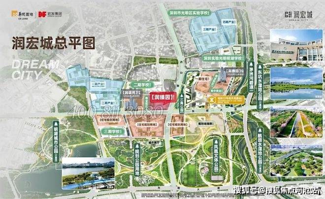 润宏城,位于深圳市光明区凤凰街道塘尾社区,总占地面积约195万㎡ ,总建筑面积约382万㎡,住宅面积高达172.44万㎡,分多期多地块开发,其中一期就分4个地块开发,前期入市的是润雅园已经基本售罄,还剩少量4房在售,这次润臻园就是1期其中一个地块,后面还有二期三期,另外产业配套也分4期开发打造,还规划有3所九年制学校、2所18班幼儿园,3所12班幼儿园,3所9班幼儿园。