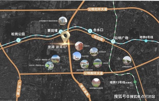 6号线往东两个站可以抵达“公明广场站”,这是6号线和13号线的换乘站。地铁13号线的规划(包括延长线的规划)可不得了,基本就是大湾区的最强科技地铁线:深圳湾口岸、后海总部基地、科苑(科技园南区)、深大、科兴(科技园北区)、留仙洞总部基地、一直到光明。