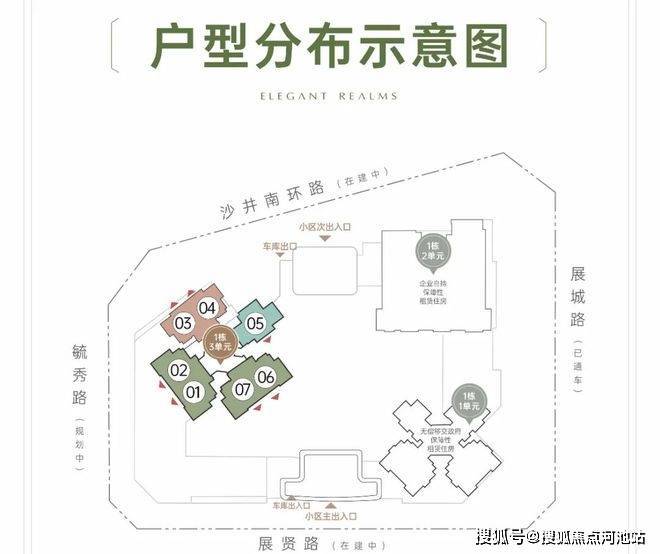 招商会展湾名邸共由6栋总高26-31层高的住宅组成,其中1栋1单元公租房26F,1栋2单元自持租赁30F,1栋3单元/2栋住宅31F,3栋/5栋住宅32F,4栋是1所9班制幼儿园。