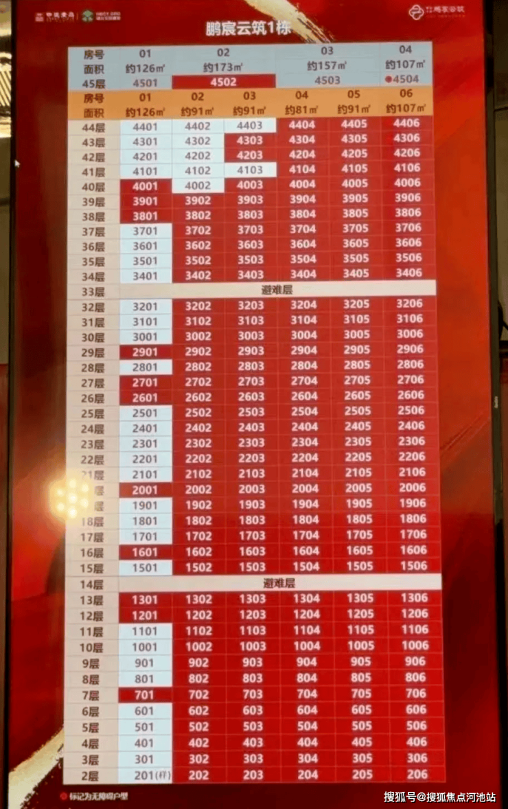 1/2栋47F,3T6户;3/5栋32F,2T6户;6栋32F,2T5户;4栋商业2F。
