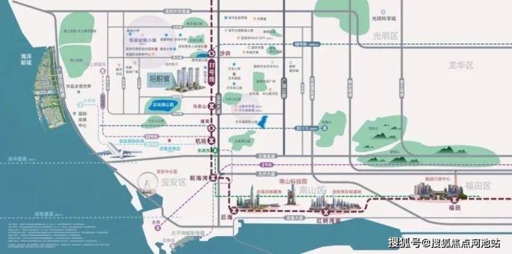 项目紧邻11号线沙井站约800米,5站到机场,8站通宝中,快速通达前海湾、后海总部基地,深超总、福田中心。
