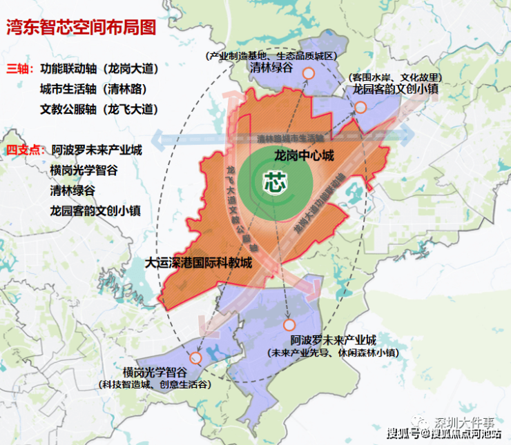 龙岗区为东进战略核心区,“一芯两核多支点”战略布局,中心城定位“湾东智芯”,打造现代化国际化“城市新客厅”,也将汇聚更高端人才、产业、资金,前景可鉴。