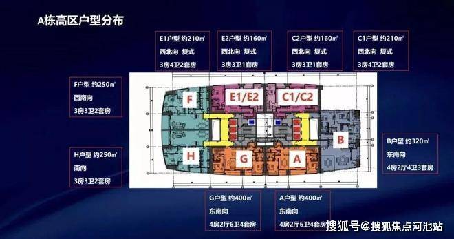 建面约19万㎡,A、B两栋,户型涵盖75m²一房至800m²顶复,主力户型为140-500m²,户型面积跨度很大大,有30多个户型。