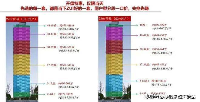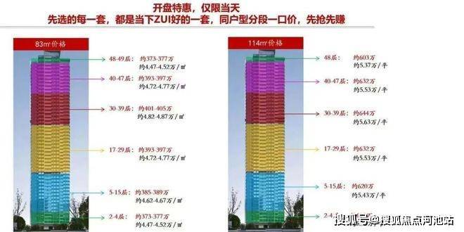 5栋备案均价5.91万/㎡,单价区间5.2-6.56万/㎡,总价区间433-552万。开盘折扣:95折*97折*98折*98折*99折*99折*99折≈85.87折,折后均价5.07万/㎡,折后单价区间4.46-5.63万/㎡,折后总价区间373-643万。