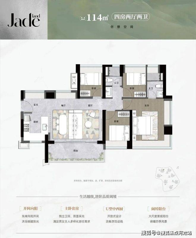 92平南向4房2卫,灵动空间,超阔视野,折后底价:426万-521万