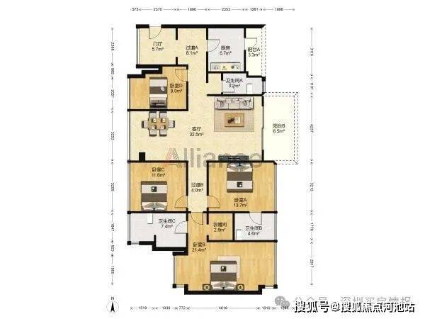◆户型:4室2厅1厨3卫2阳台,可改五房