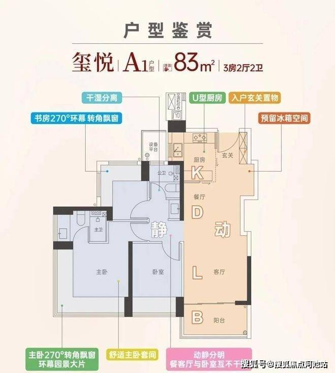 83-90㎡三房两厅两卫:科学规划,空间利用率高,得房率约95%以上 ;