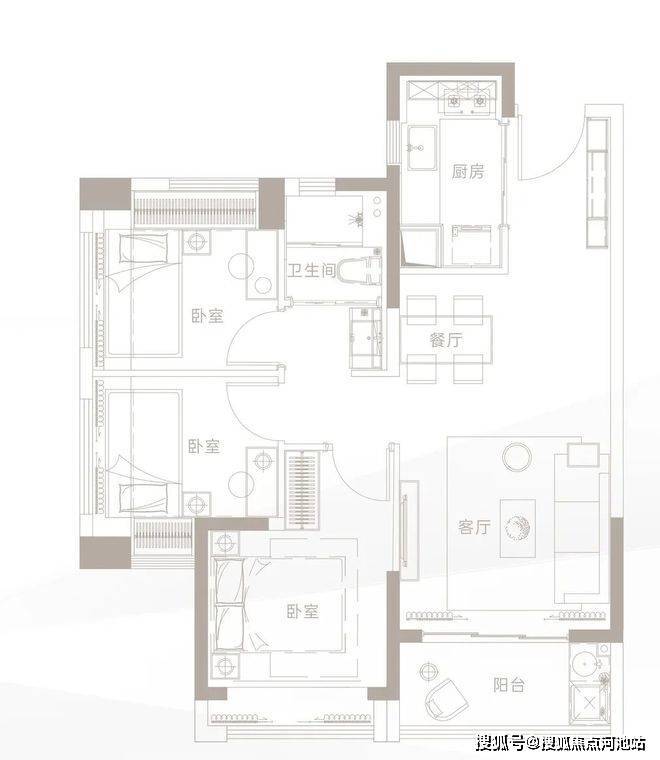 主力户型:约79㎡三房两厅一卫
