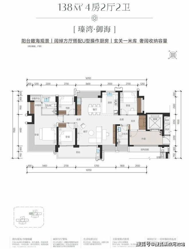 户型使用率超100%,据说最大使用率可达108%,最大赠送面积接近44㎡。其中主力户型为西南朝向,既能看海又能看到企鹅岛。