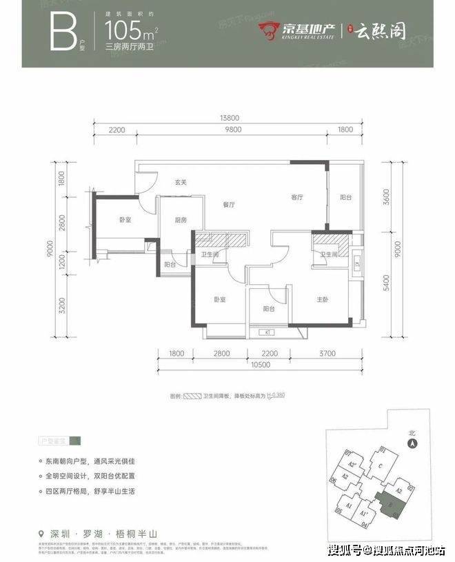 2)山景王炸户型:备案使用率约80%,全明空间通风采光俱佳,阔绰阳台,奢享梧桐阔绰风光。