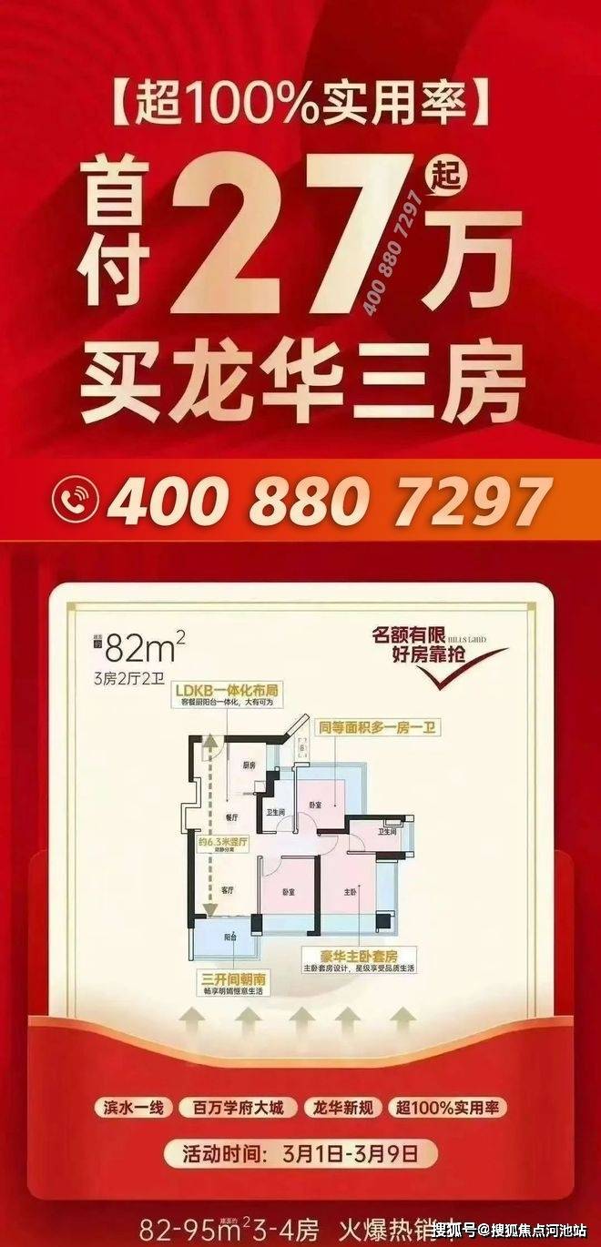 82㎡的3房2厅2卫,折后总价280万起,单价约3.59万/㎡起。