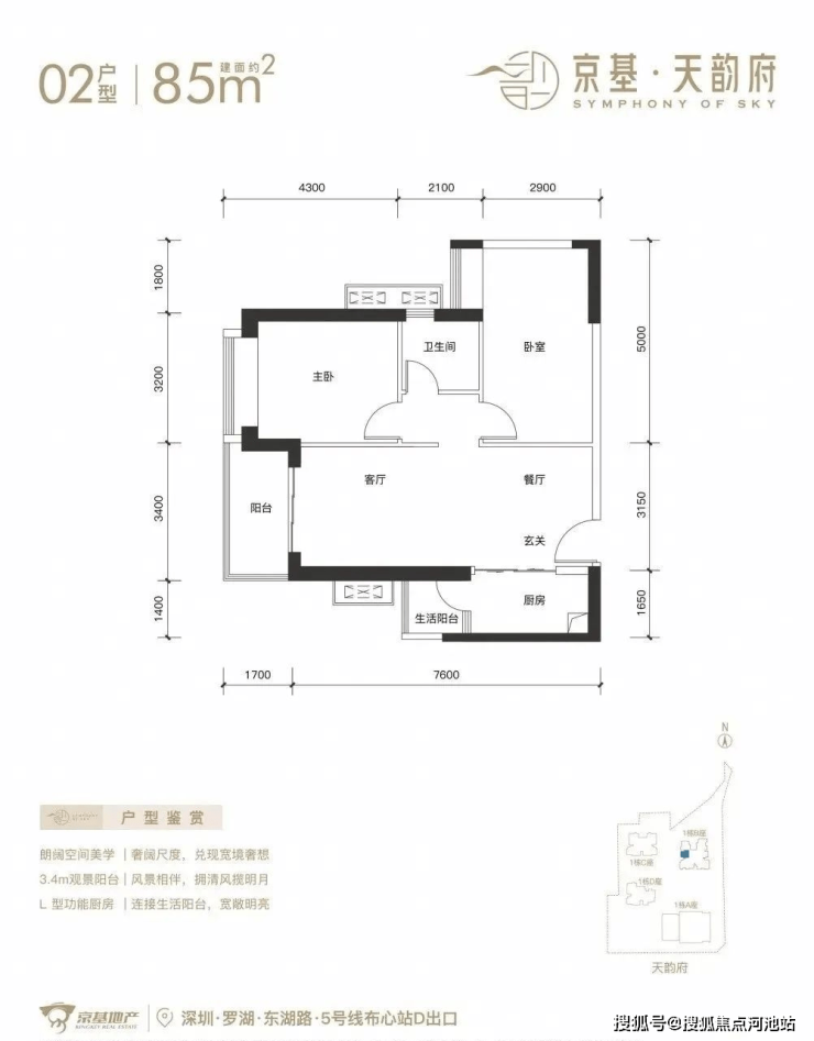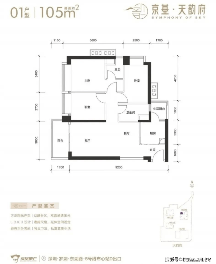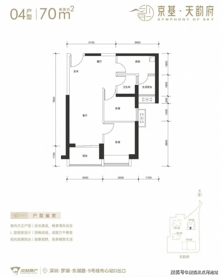 深圳【京基天韵府】已全面开盘,看房需来电进行预约,目前推出1栋B座,244套房源。面积有70-85㎡的2房1卫,105㎡的3房2卫,120-150-180㎡的4房2卫户型,项目位于罗湖区东湖街道,西临东晓路,北临东湖路,东临丹平快速路,距离5号线“布心站”300米,7号线“太安站”700米范围内,属于“双地铁”物业。