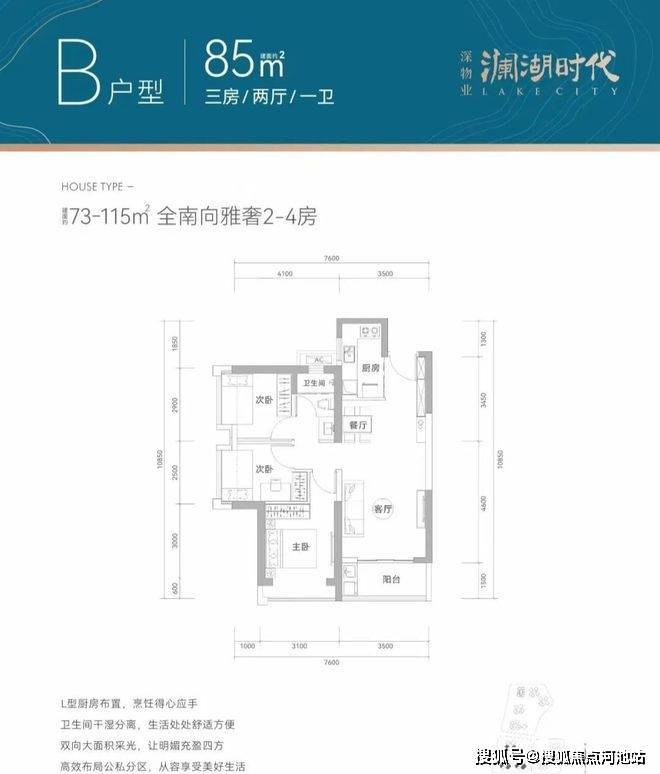 ✨产品面积段:建面约73-115㎡全南宽奢2-4房