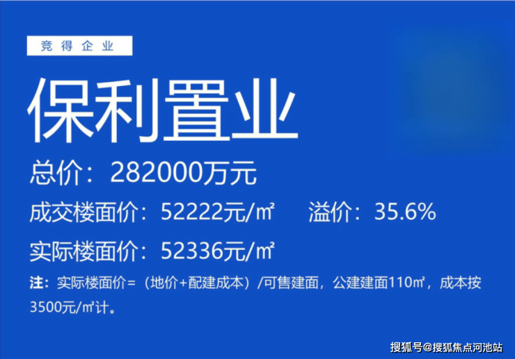 项目原名宝安A001-0219宗地,2024年9月26日土拍中,保利集团经82轮竞价,以28.2亿成交,楼面价52222元/m²,预计建安成本7.83万/m²。