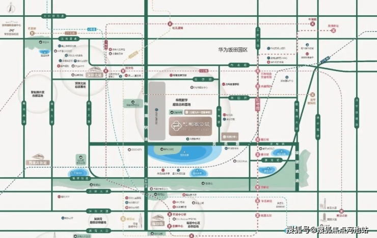 ④深圳发展中轴,华南数字超级总部基地、星河world总部基地、坂雪岗科技城、北站产融结合示范区、梅彩新一代信息科技,连成深圳中轴含金量置顶的价值金线。