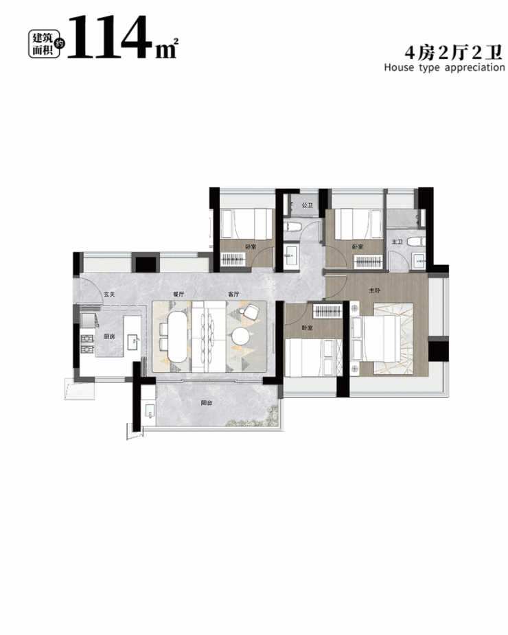 有建面约83㎡的3房2卫、89㎡的大3房2卫,也有建面约98㎡、114㎡的4房2卫产品,能满足一家三口、乃至三代人的不同居住需求。