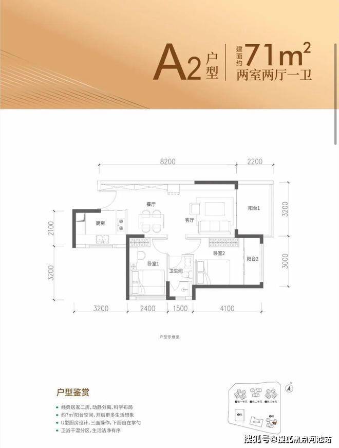 约68-71㎡2房2厅1卫