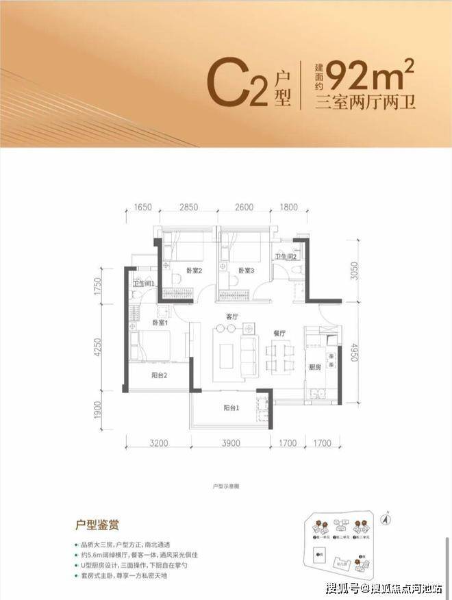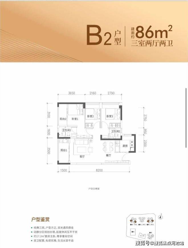 约86-98㎡3房2厅2卫