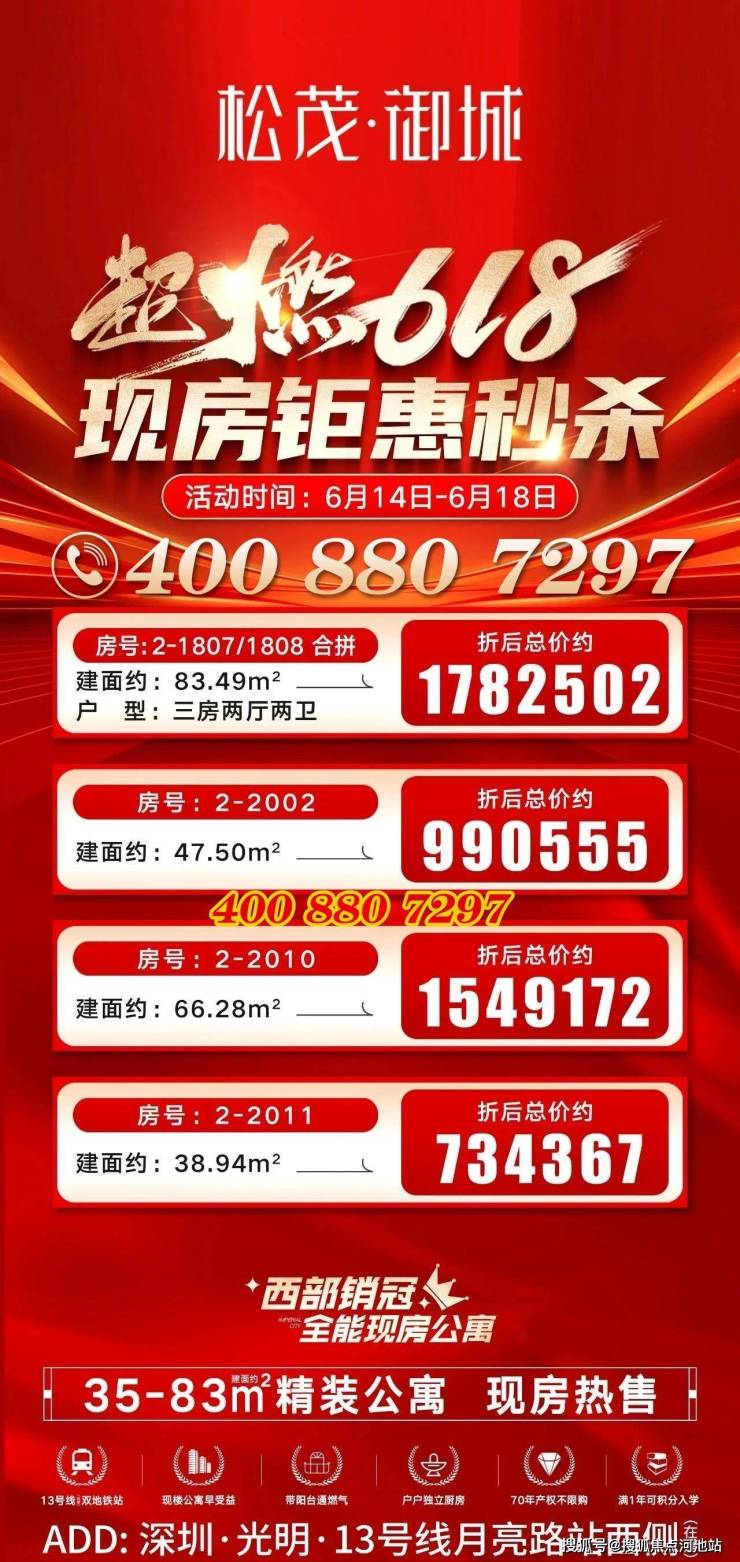 看完以上图文介绍,您如果想要了解更多关于我们深圳光明松茂御城楼盘最新消息、当前剩余房源、这几天楼盘现场折扣优惠活动、近期周边房价走势、银行相关利率政策等情况的话,欢迎来电咨询松茂御城开发商售楼处免费400咨询/预约热线电话:400-880-7297(已认证)中介勿扰。