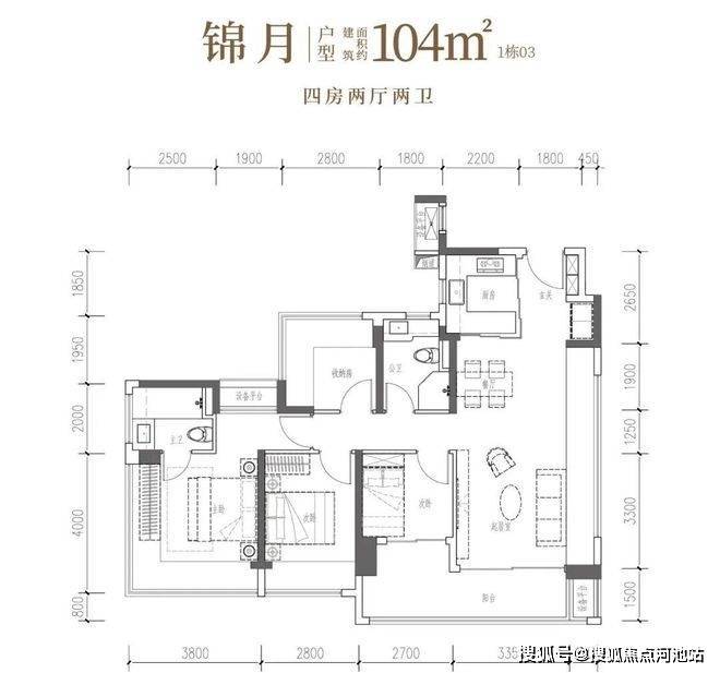 104-107㎡4房2卫:折后单价约4.62-5万,折后总价约490-530万