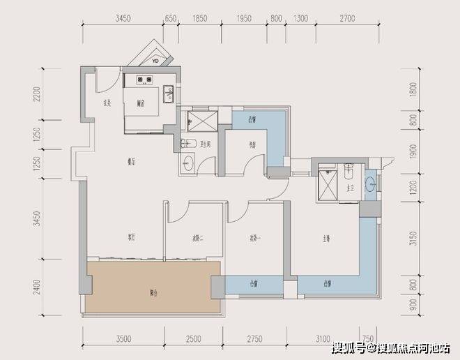89A户型 3+1房2卫户型
