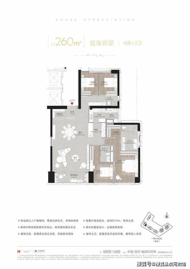 建面约260㎡揽海官邸 4房+3卫(T11-03低区)
