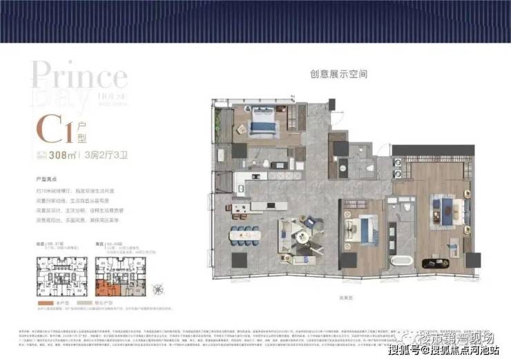 大平面大尺度定位,层高约3.6米,横厅设计确保最大化观景面,全户型纵享环幕视野。项目打造主力建面约215-415㎡纯粹品质公寓共191席,顶层为建面约1270㎡公寓产品。
